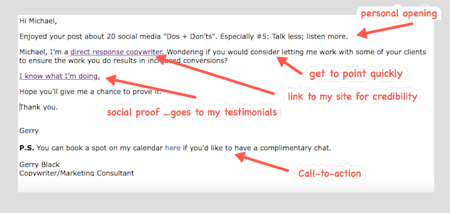 Never make your email longer than three quarters of a page. If you don't let them see the end of it, you run the risk of having them assume it's long.